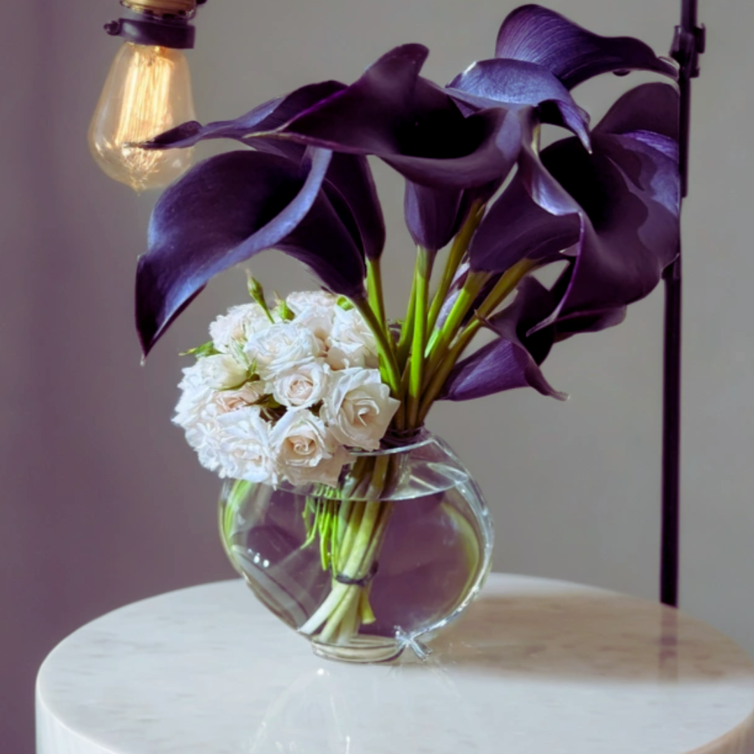 Diseño floral en base ovalada de forma delicada de cristal, compuesto por: