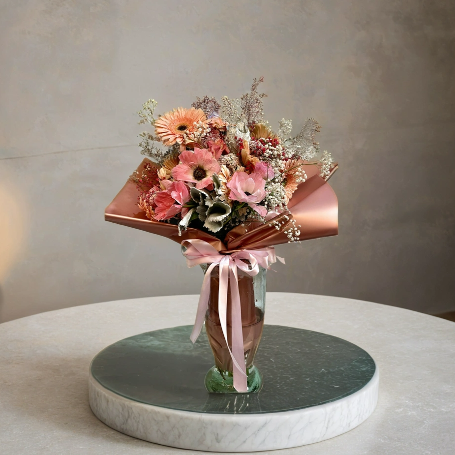 Ramo con anémonas como flor protagonista y en armonía con otras flores.